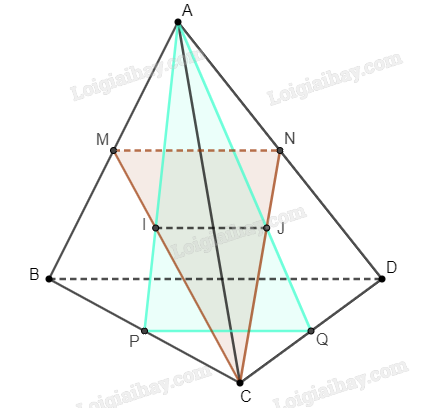 Gọi \(\left\{ I \right\} = MC \cap AP\), \(\left\{ J \right\} = NC \cap AQ\).