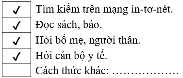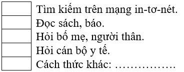 Đánh dấu ✔ vào ô trống trước những cách thức thu thập thông tin mà em sẽ thực hiện.