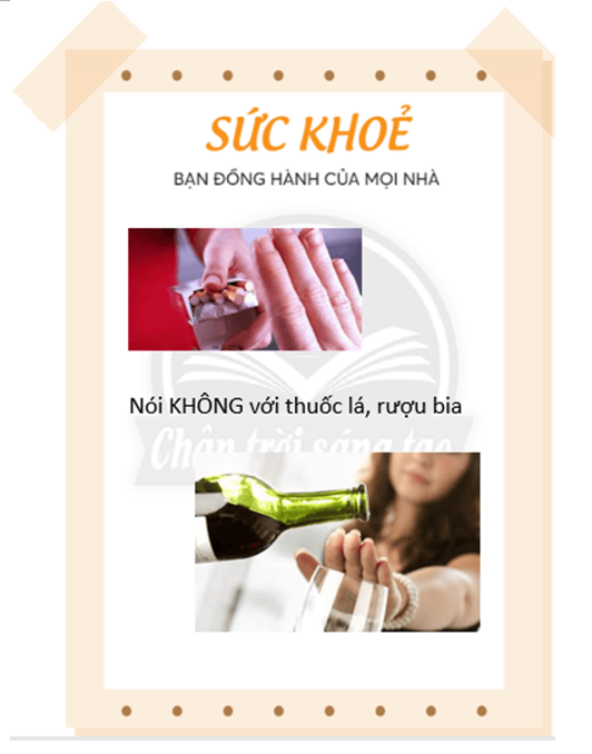 Viết, vẽ và trang trí trang báo “Sức khoẻ” để tuyên truyền đến mọi người không sử dụng các chất gây hại và tránh những hoạt động không tốt cho cơ thể.