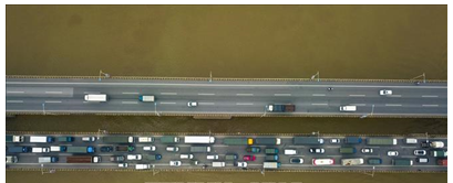 b) Hai đường thẳng cắt nhau: Hình ảnh các dây của cây cầu