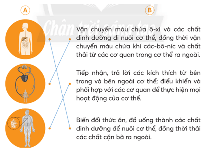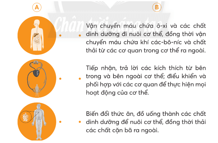 Nối các hình ở cột A sao cho phù hợp với chức năng ở cột B.