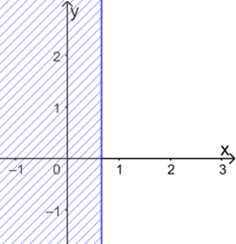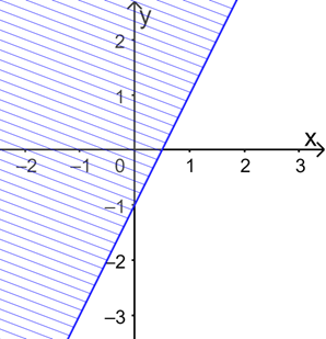 Do đó miền nghiệm của bất phương trình \(2x - y \ge 1\) là nửa mặt phẳng bờ c, không chứa điểm O.