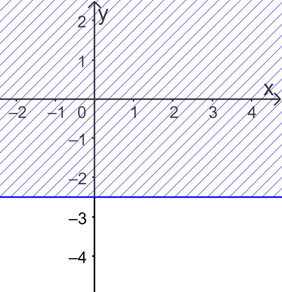 Do đó miền nghiệm của bất phương trình \(2y \le - 5\) là nửa mặt phẳng bờ b, không chứa điểm O.