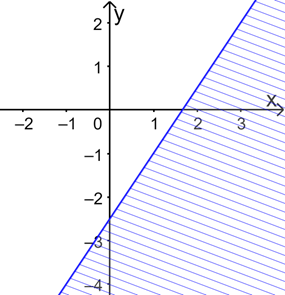 Do đó miền nghiệm của bất phương trình \(3x - 2y < 5\) là nửa mặt phẳng bờ d, chứa điểm O.
