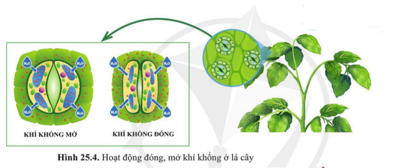 Quan sát hình 25.4 và mô tả hoạt động của khí khổng.