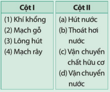 Luyện tập 1. Trình bày sự trao đổi nước và các chất dinh dưỡng ở thực vật. 2. Ghép mỗi cấu trúc (ở cột I) với chức năng (ở cột II) cho phù hợp