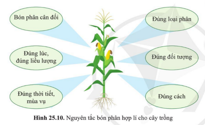 Câu hỏi Quan sát hình 25.10, nêu nguyên tắc bón phân hợp lí cho cây trồng.