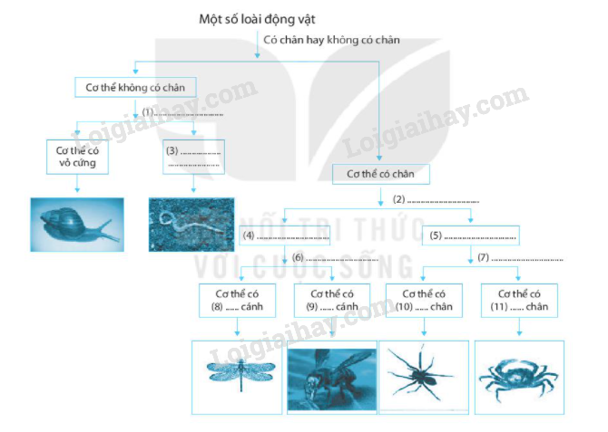 Em hãy hoàn thành những thông tin còn thiếu trong sơ đồ phân loại một số loài động vật sau: