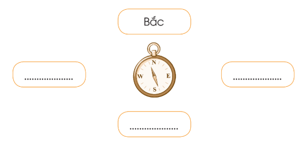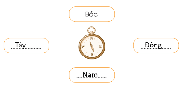 Quan sát la bàn và viết vào chỗ (…) tên các phương phù hợp.