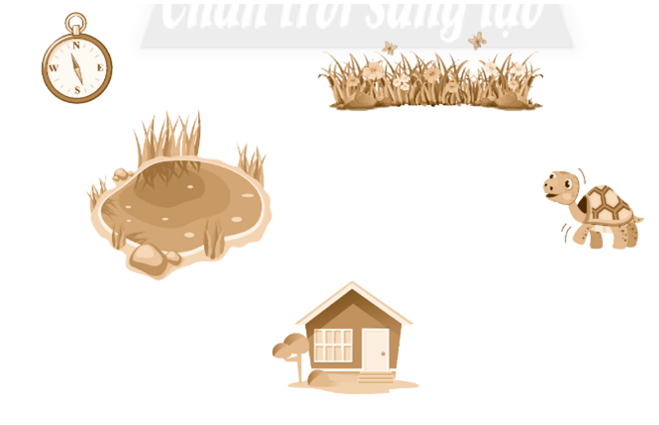- Đặc hai ngón tay lên con rùa rồi bước về phía hồ nước: