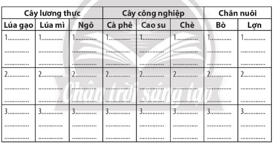 Dựa vào thông tin trong SGK, em hãy hoàn thành nội dung bảng sau để kể tên 3 quốc gia đứng đầu về các nông sản