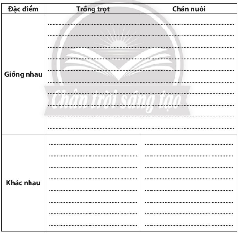 Dựa vào nội dung trong SGK và hiểu biết của bản thân, em hãy hoàn thành thông tin bảng sau để so sánh đặc điểm của ngành trồng trọt và chăn nuôi