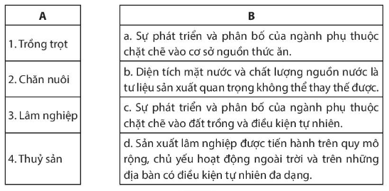 Ý nào sau đây không thể hiện vai trò của ngành trồng trọt. Cây lương thực chính của miền nhiệt đới (đặc biệt là khu vực châu Á gió mùa) là. Nguồn thức ăn đối với chăn nuôi đóng vai trò. Ý nào sau đây không đúng về đặc điểm ngành lâm nghiệp?