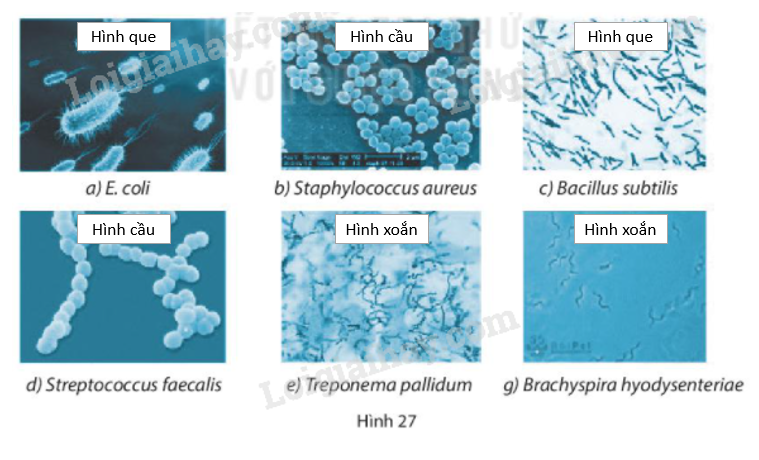 Quan sát hình 27 ta thấy các vi khuẩn trong hình có một số hình dạng như sau: