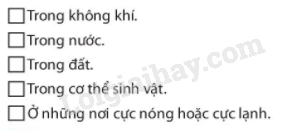 Môi trường vi khuẩn sống: trong không khí, trong nước, trong đất, trong cơ thể chúng ta và các sinh vật sống khác.