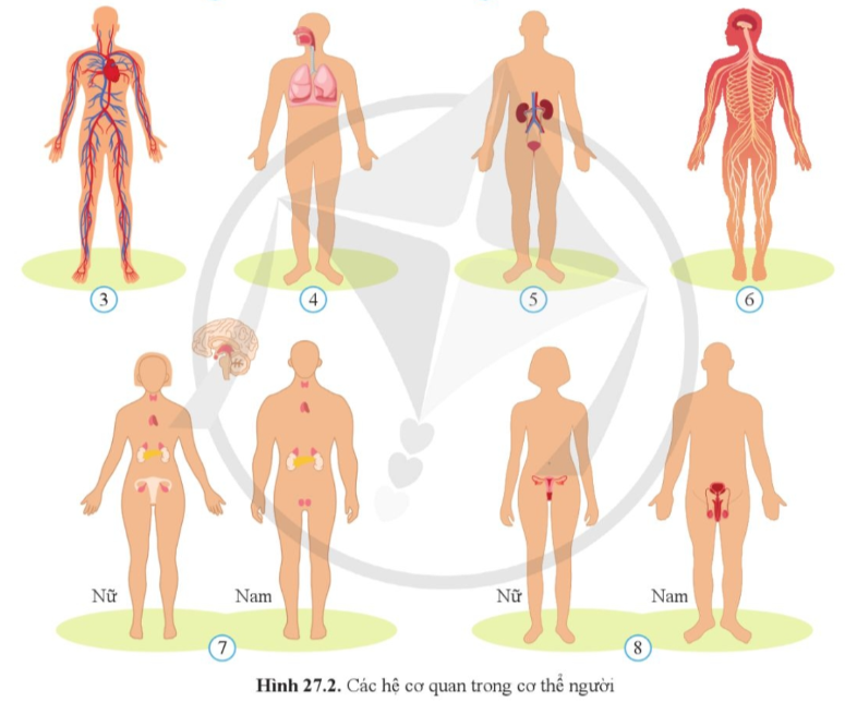 | Quan sát hình 27.2 và cho biết tên các hệ cơ quan trong cơ thể người |