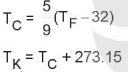 Các công thức sau cho biết quan hệ toán học giữa các nhiệt độ trên.