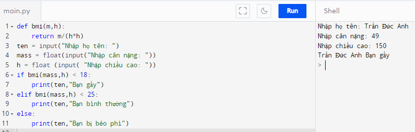 Sau đó thông báo "Bạn gầy" hoặc "Bạn bình thường" hoặc "Bạn bị béo phì".