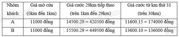 Một hãng taxi có giá cước như sau (Bảng 3):