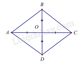 Do \(ABCD\) là hình thoi nên \(AC \bot BD,O\) là trung điểm của \(AC\) và \(BD\).