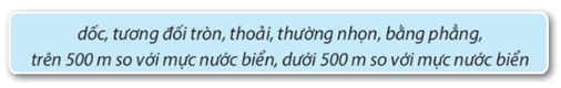 Viết tên một số dạng địa hình mà em biết vào bảng sau.