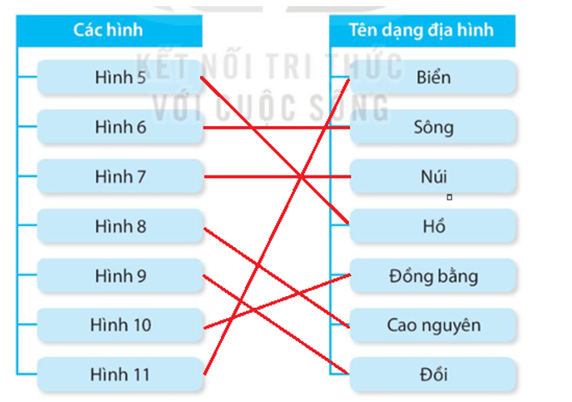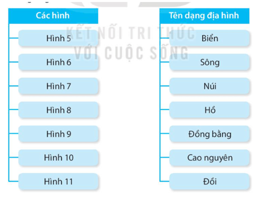 Ghép các hình từ 5 đến 11 (trang 114, 115 SGK) với dạng địa hình tương ứng.