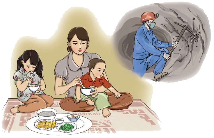 Bố Thơ là thợ mỏ. Bố ở xa nhà. Ở nhà có mẹ, có Thơ, có bé Tộ. Cả nhà nhớ bố.