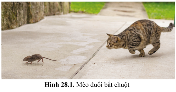 Mở đầu Quan sát hình 28.1, mô tả hoạt động của mèo và chuột. Hoạt động đó của mèo và chuột có gọi là cảm ứng không? Vì sao?