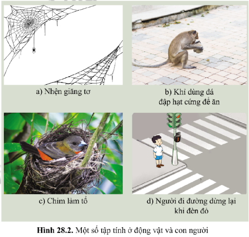 Câu hỏi 3. Quan sát hình 28.2: a) Nêu ý nghĩa của mỗi tập tính đối với động vật, con người ở các hình a, b, c, d.