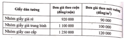 Nếu bác Lan mua 1 cuộn giấy dán tường giá trung bình và 42 m2 giấy dán tường cao cấp thì bác phải trả số tiền là: