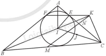 Đường tròn tâm I nội tiếp tam giác ABC tiếp xúc với AB, AC lần lượt tại F và E. Kẻ CK vuông góc với BI. Gọi M, N lần lượt là trung điểm của BC, AC. Chứng minh: