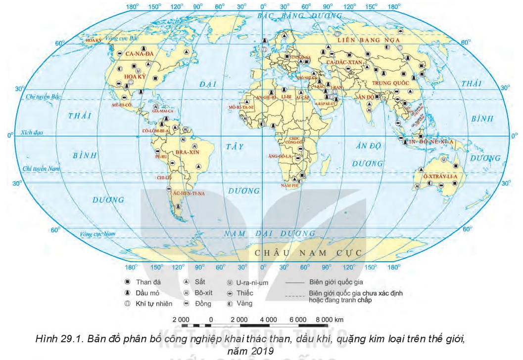 Đọc lại kiến thức về sự phân bố ngành công nghiệp khai thác dầu khí mục 1b (SGK trang 81) và quan sát bản đồ hình 29.1