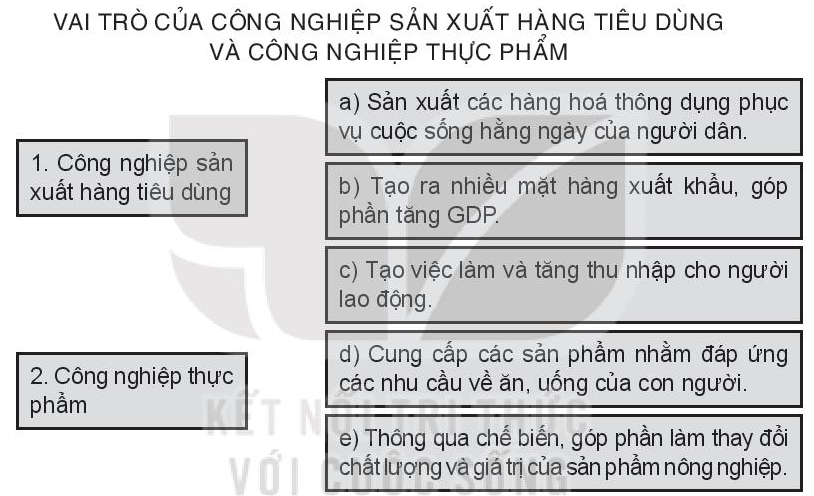 Đọc lại kiến thức về vai trò của 2 ngành Công nghiệp sản xuất hàng tiêu dùng và công nghiệp thực phẩm.