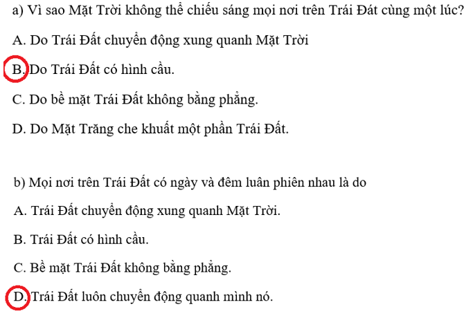 b) Mọi nơi trên Trái Đất có ngày và đêm luân phiên nhau là do