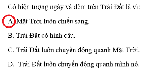 Có hiện tượng ngày và đêm trên Trái Đất là vì: