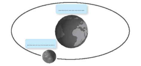 Viết vào chỗ (…) cụm từ “Mặt Trăng” hoặc “Trái Đất” cho phù hợp. Vẽ mũi tên thể hiện chiều chuyển động của Mặt Trăng xung quanh Trái Đất.