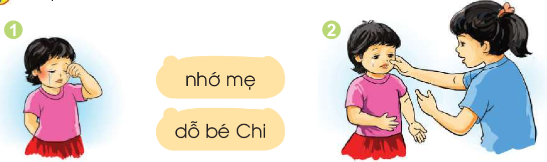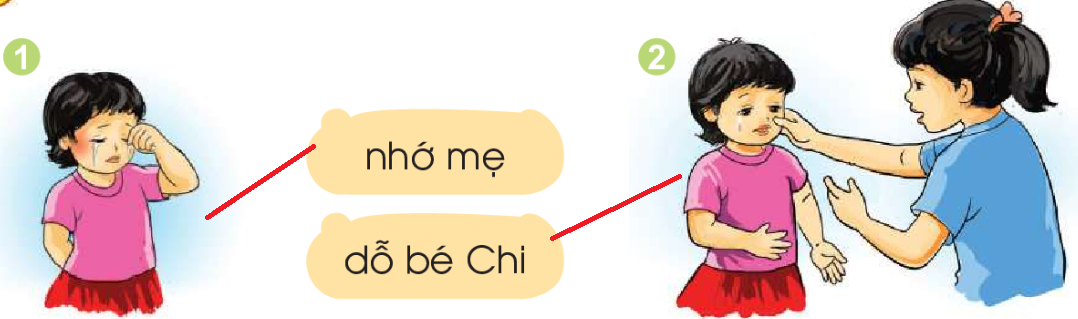 Ở nhà trẻ, Chi nhớ mẹ. Chị Trà dỗ: “Bé nhè thì cô chê đó”. Bé nghe chị.