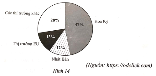 Biểu đồ Hình 14 cho biết cơ cấu thị trường xuất khẩu hàng dệt may của Việt Nam trong 6 tháng đầu năm 2019.