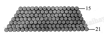 Các khúc gỗ được xếp như hình bên dưới. Lượt thứ nhất có 21 khúc, lượt thứ hai có 20 khúc, …, lượt trên cùng có 15 khúc. Tính tổng số khúc gỗ đã được xếp.