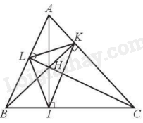 Từ đó ta có \({90^o} - \widehat {AKL} = {90^o} - \widehat {IKC}\) hay \(\widehat {LKH} = \widehat {IKH}\). Vì vậy KH là đường phân giác của góc LKI. Tương tự cũng có LH là đường phân giác của góc KLI.