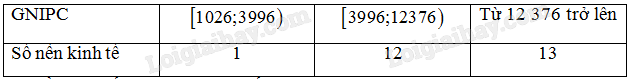 a) Ghép nhóm mẫu số liệu trên theo mức thu nhập của nền kinh tế.