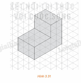 Hình chiếu trục đo của một vật thể được vẽ trên giấy kẻ ô tam giác đều như trong Hình 3.31.