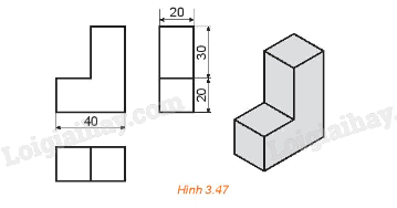 Bản vẽ trong Hình 3.47 thể hiện duy nhất vật thể cần được biểu diễn, tuy nhiên các kích thước của vật thể không được xác định đầy đủ từ bản vẽ. Kích thước bị thiếu là: