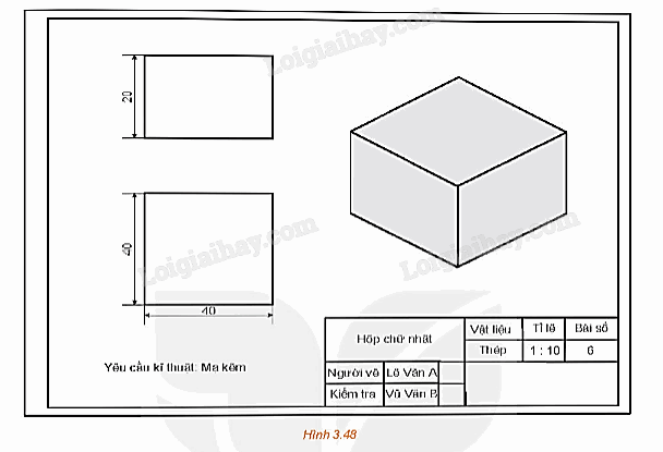 Đọc bản vẽ kĩ thuật trong Hình 3.48.