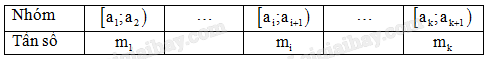 Số trung bình của mẫu số liệu ghép mẫu là: \(\overline x = \frac{{{m_1}{x_1} + ... + {m_k}{x_k}}}{n}\), trong đó \(n = {m_1} + ... + {m_k}\) là tổng số quan sát (còn gọi là cỡ mẫu) và \({x_i} = \frac{{{a_i} + {a_{i + 1}}}}{2}\) gọi là giá trị đại diện của nhóm \(\left[ {{a_i};{a_{i + 1}}} \right]\)