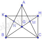 Hai đường trung tuyến BM, CN của tam giác ABC cân tại A cắt nhau tại G. Gọi H, K lần lượt là điểm sao cho trung điểm của GH là M, trung điểm của GK là N.