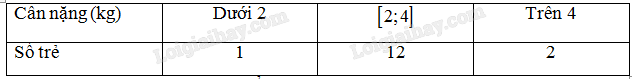Trẻ sơ sinh được xem là nhẹ cân nếu cân nặng khi sinh dưới 2kg, là thừa cân nếu cân nặng trên 4kg, là có cân nặng trung bình nếu cân nặng khi sinh từ 2kg đến 4kg. Thống kê cân nặng (tính theo kg) của 15 trẻ sơ sinh tại một bệnh viện cho kết quả như sau: