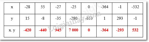 +) Với x = -28; y = 15 thì x.y = (-28). 15 = - (28. 15) = -420.