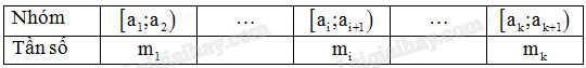 Số trung bình của mẫu số liệu ghép mẫu là: \(\overline x = \frac{{{m_1}{x_1} + ... + {m_k}{x_k}}}{n}\), trong đó \(n = {m_1} + ... + {m_k}\) là tổng số quan sát (còn gọi là cỡ mẫu) và \({x_i} = \frac{{{a_i} + {a_{i + 1}}}}{2}\) gọi là giá trị đại diện của nhóm \(\left[ {{a_i};{a_{i + 1}}} \right]\).