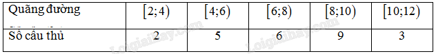 Quãng đường (km) các cầu thủ (không tính thủ môn) chạy trong một trận đấu bóng đá tại giải ngoại hạng Anh được cho trong bảng thống kê sau: